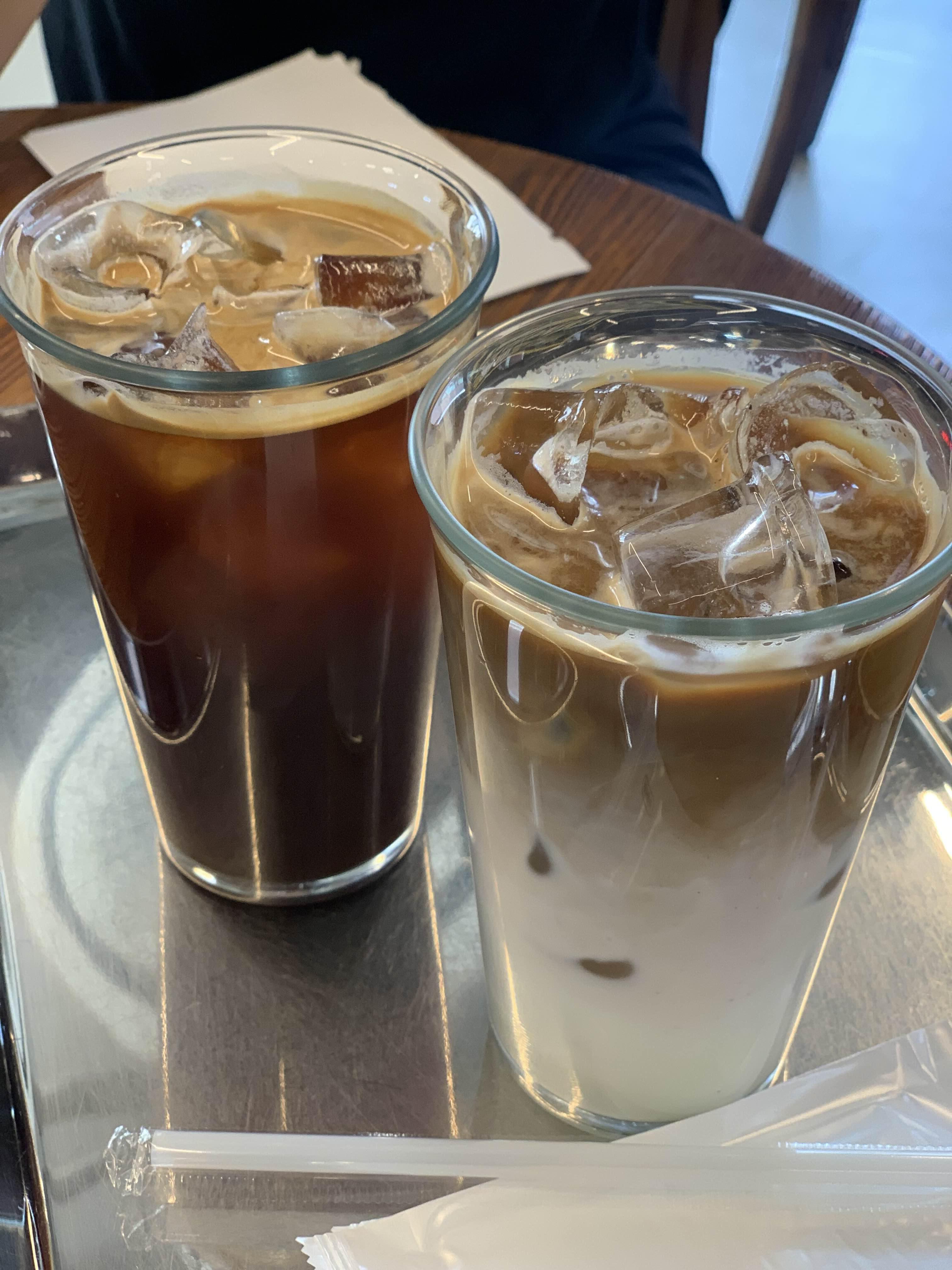 우리는 아쉽게도 오전 11시가 넘어서 도착해서 오늘의커피는 못시키고 카페라떼한잔과 아아한잔을 시켰다!