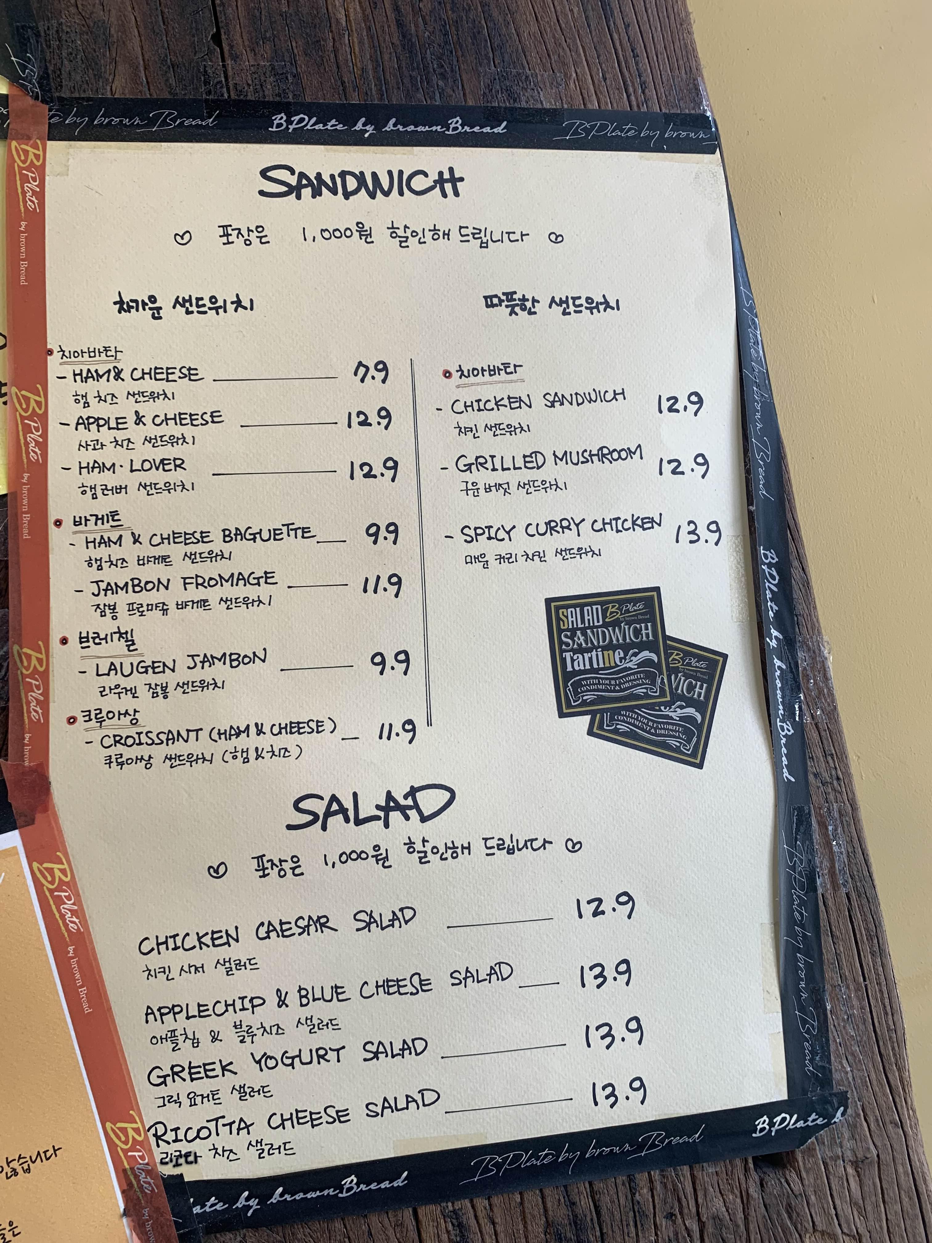 매장에는 좌석이 2인석 기준 10개정도 있어 규모가 큰편은 아니고 가서 보니까 포장하면 할인(샌드위치 샐러드 포장시 1,000원 할인)도 되고 포장 및 배달주문이 많아 보였다.